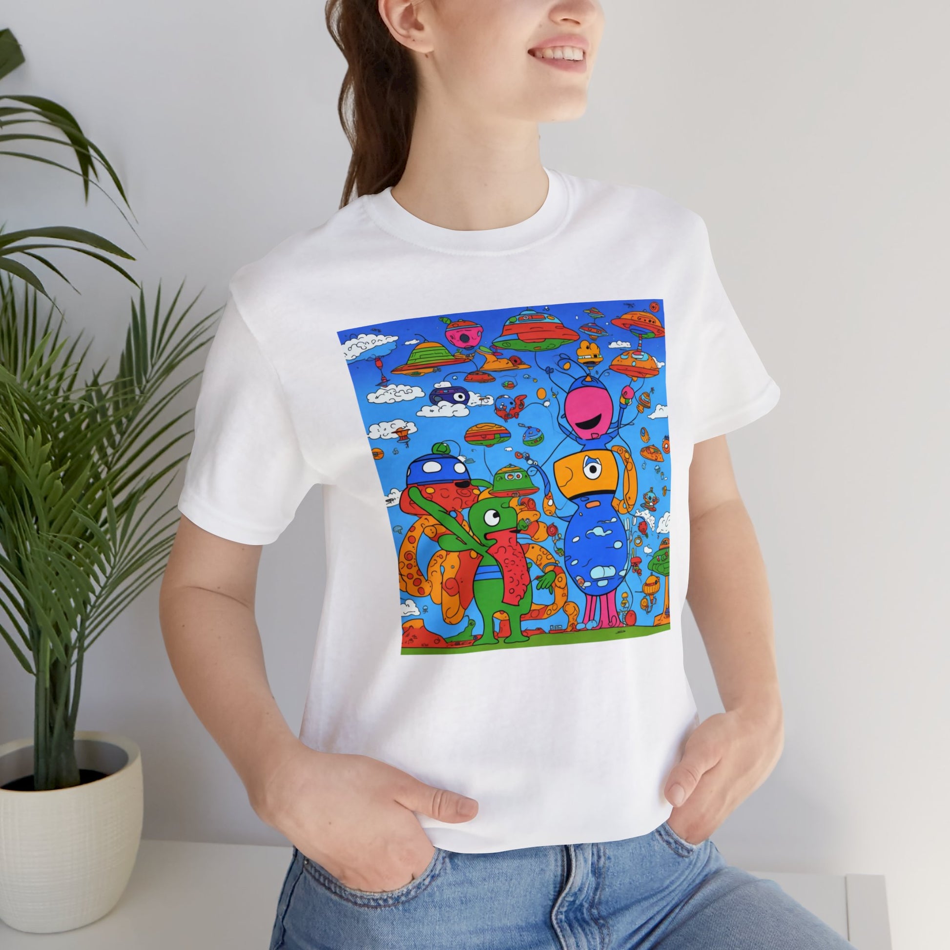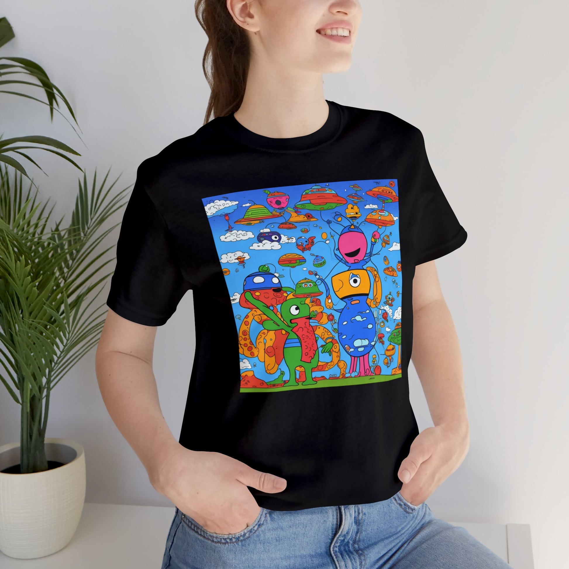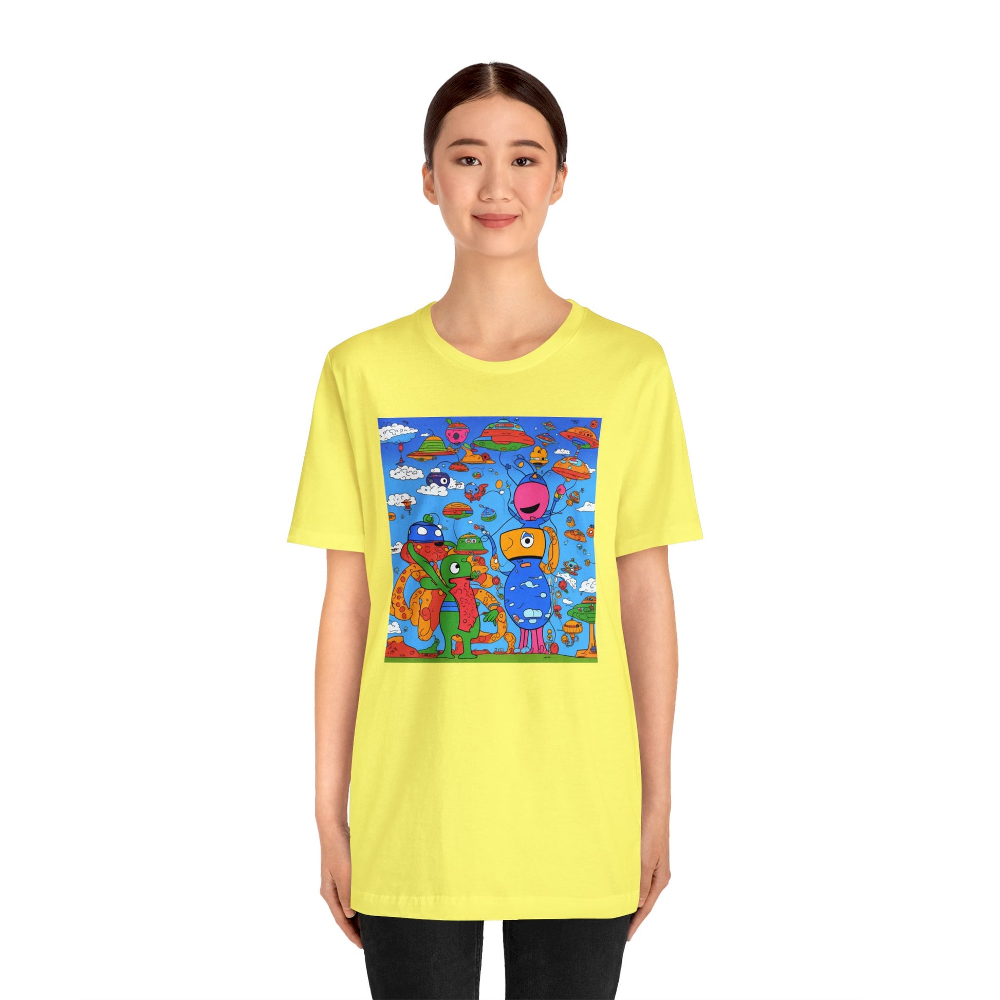 Abstraction | Abstract | Art | Colorful | Trendy | Graphic | Funny | UFO | Aliens | Tee | T-Shirt | Unisex | Men's | Women's |Short Sleeve