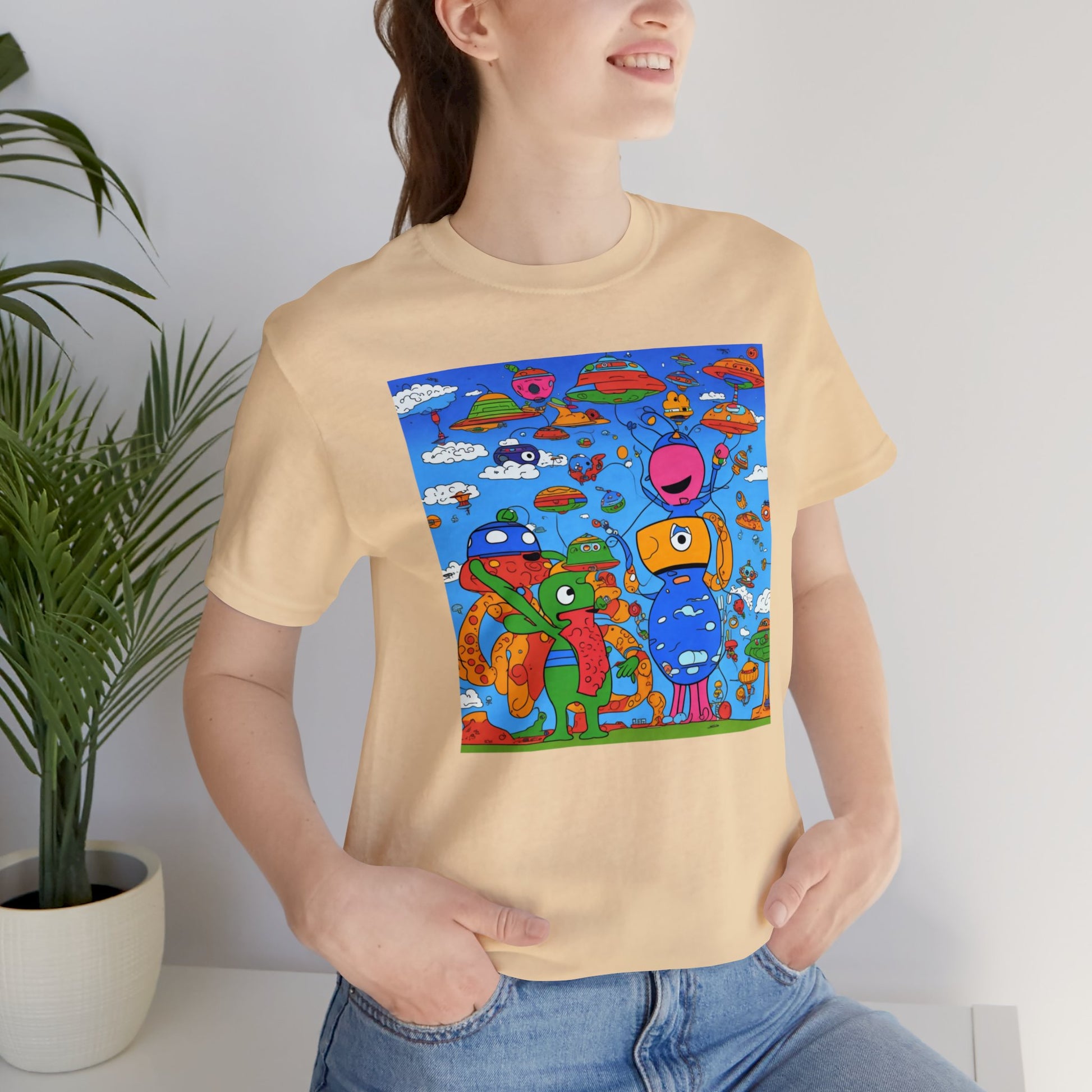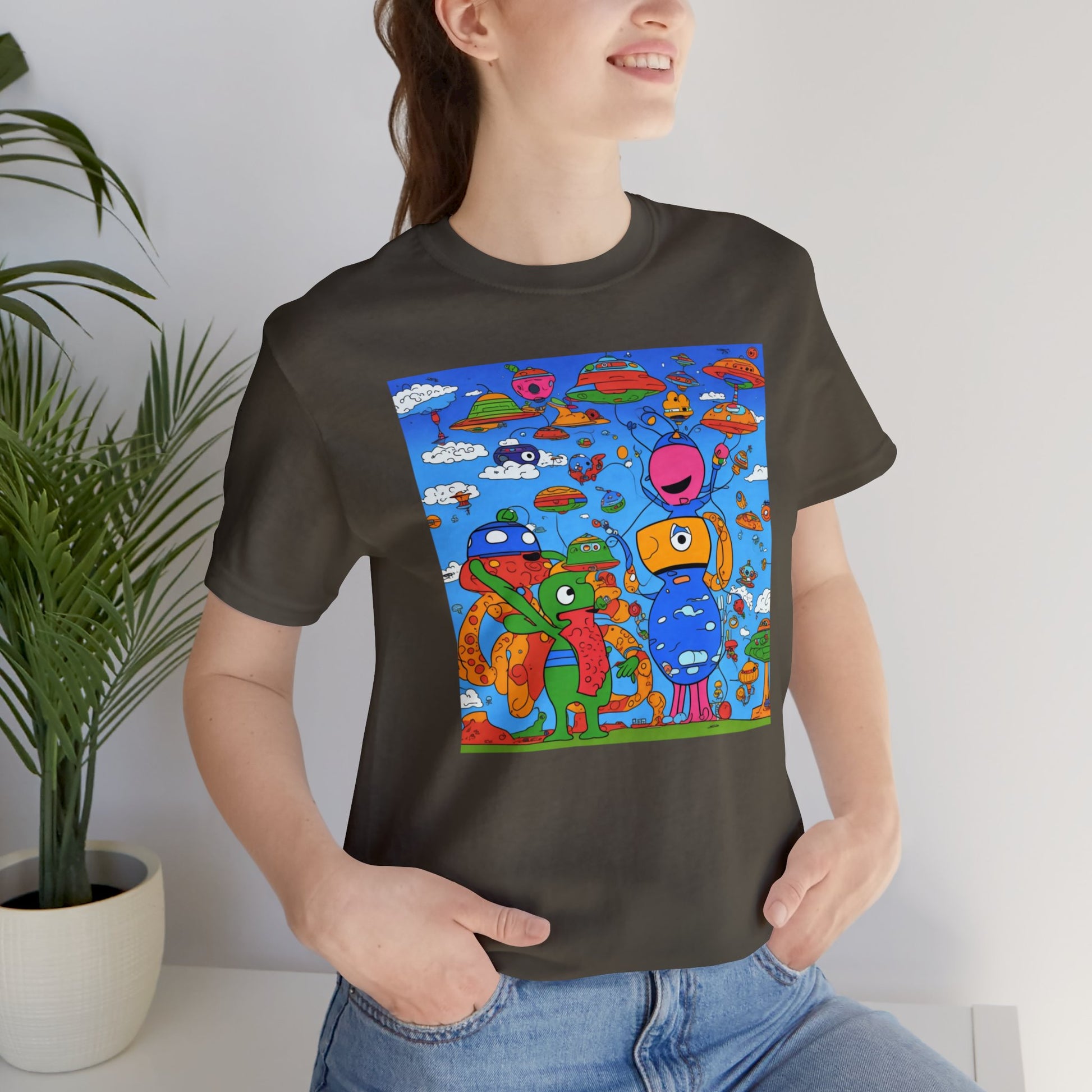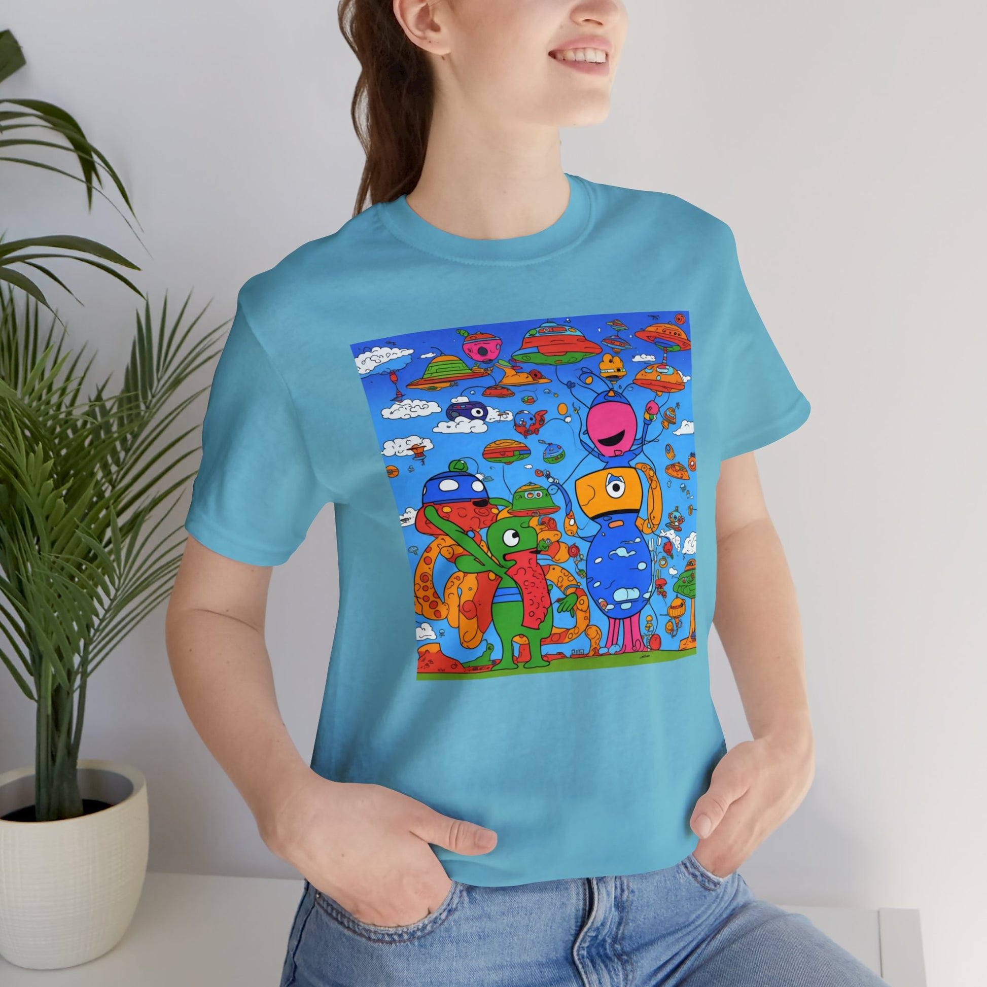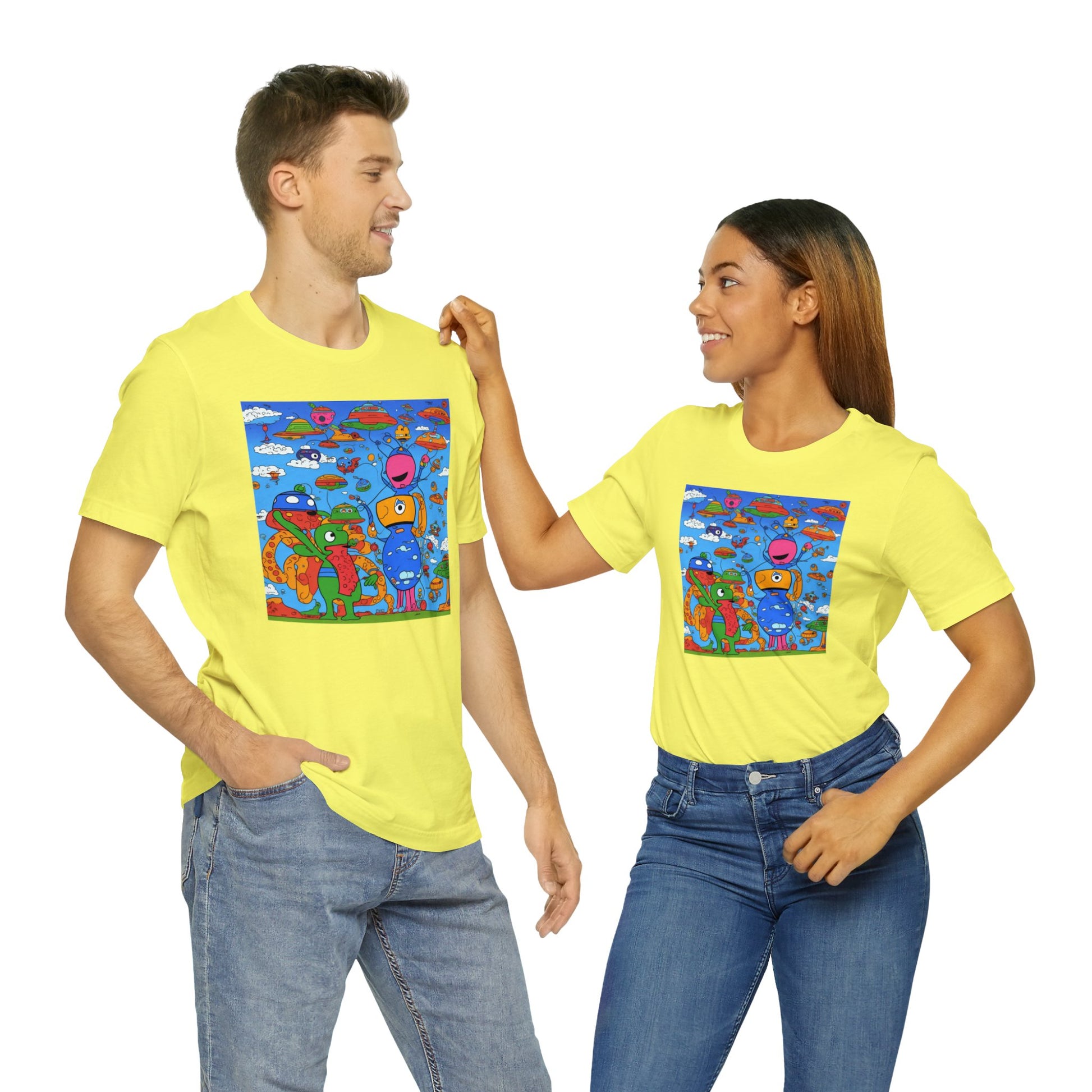 Abstraction | Abstract | Art | Colorful | Trendy | Graphic | Funny | UFO | Aliens | Tee | T-Shirt | Unisex | Men's | Women's |Short Sleeve