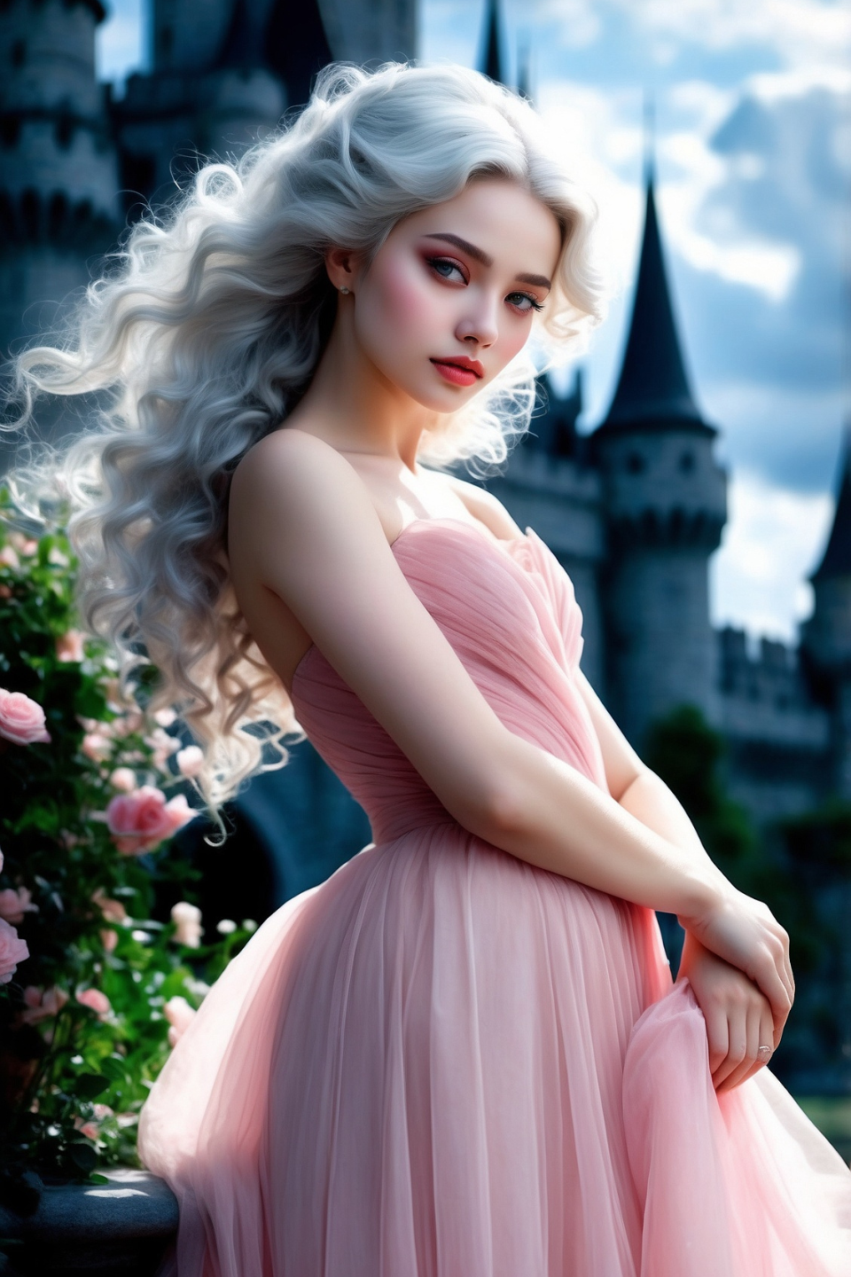 "Not your average tiara wearer, this princess in a pink gown has something special about her." This image captures the elegance and grace of a unique royal. With a sparkle in her eye and a confident poise, she radiates an extraordinary charm that sets her apart from the rest, embodying a blend of beauty and inner strength that truly makes her shine.