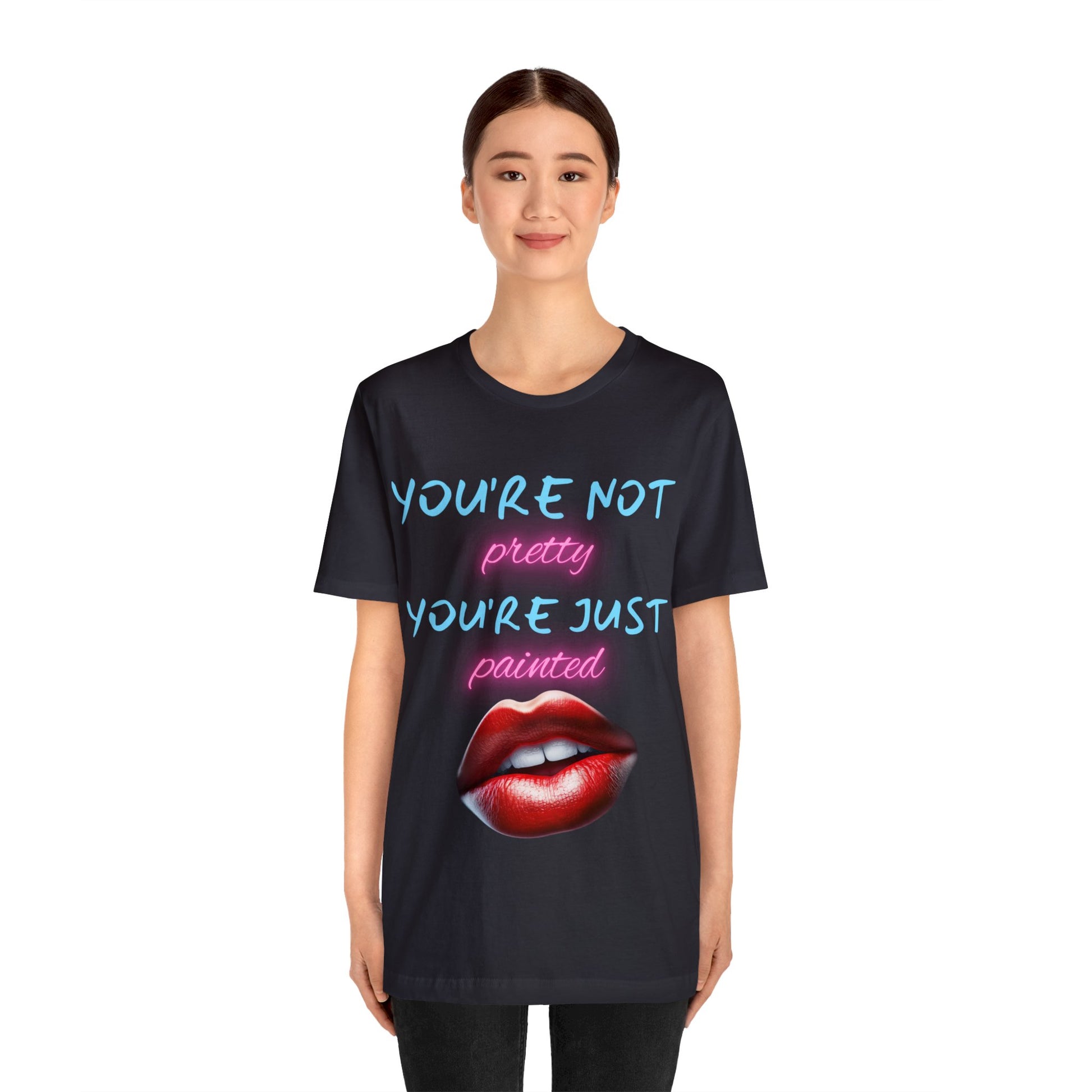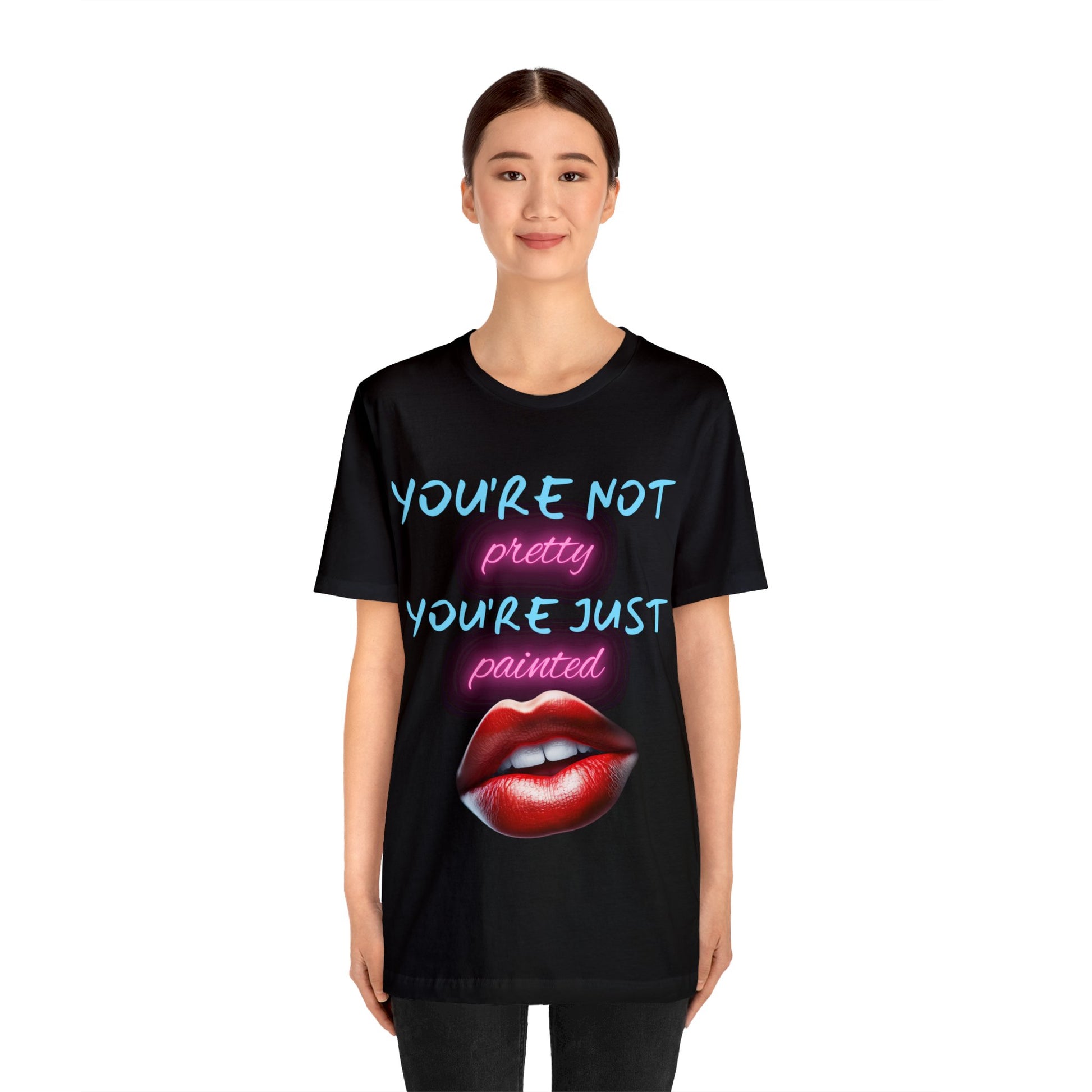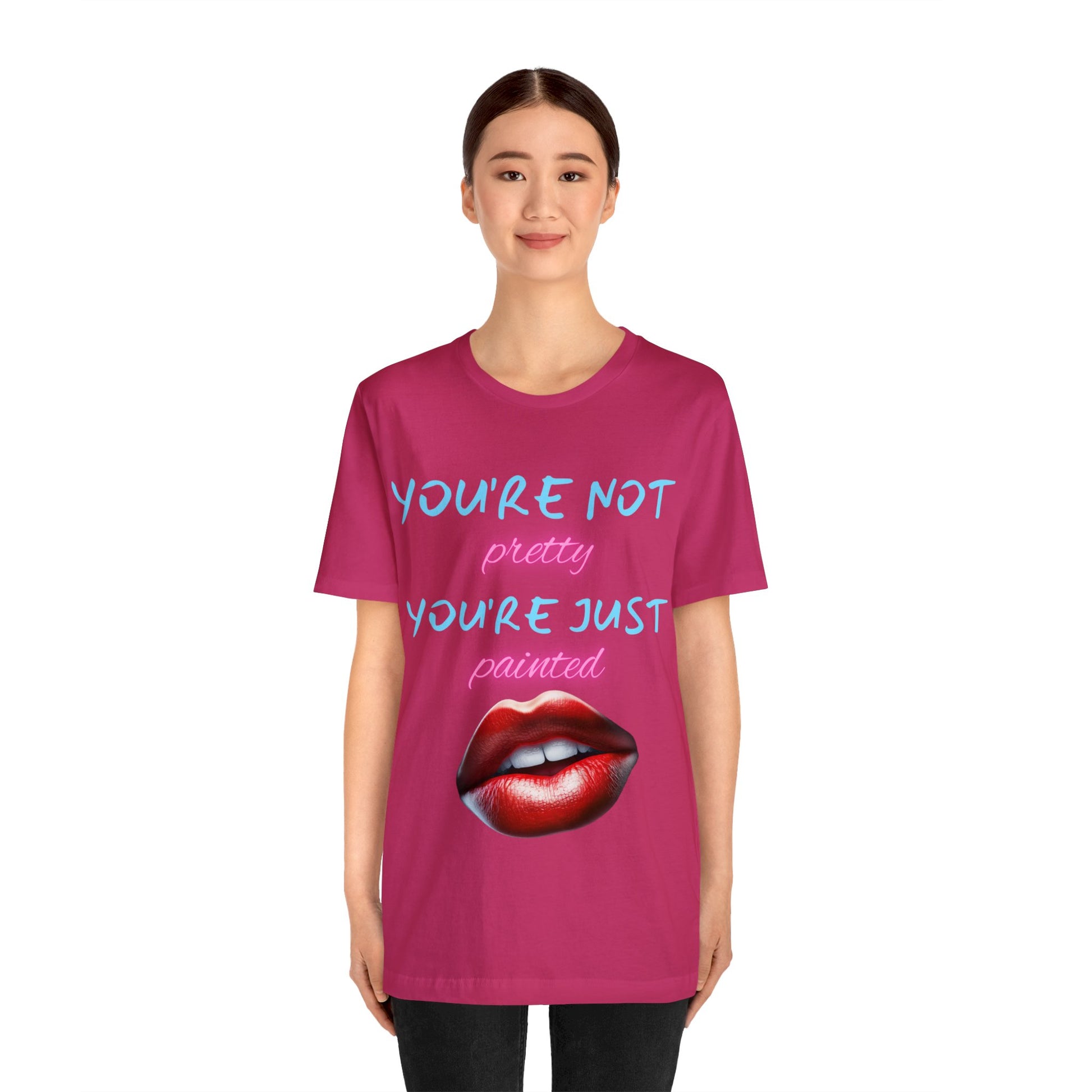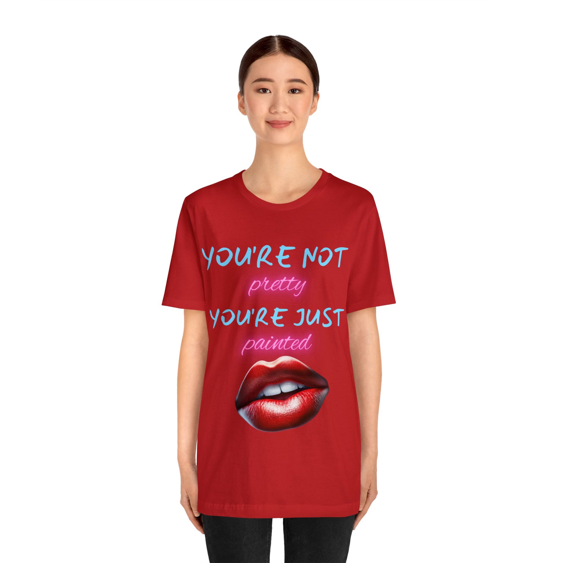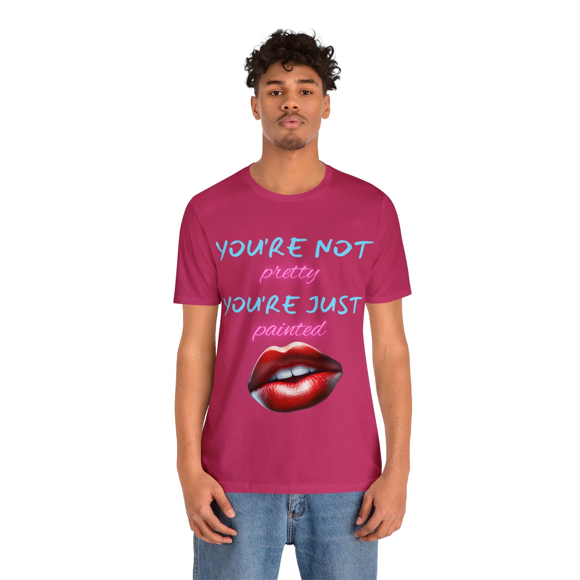 Support Natural Beauty | Funny Gift | You're Not Pretty You're Just Painted | Lips | Unisex | Men's | Women's | Front and Back | Tee | T-Shirt