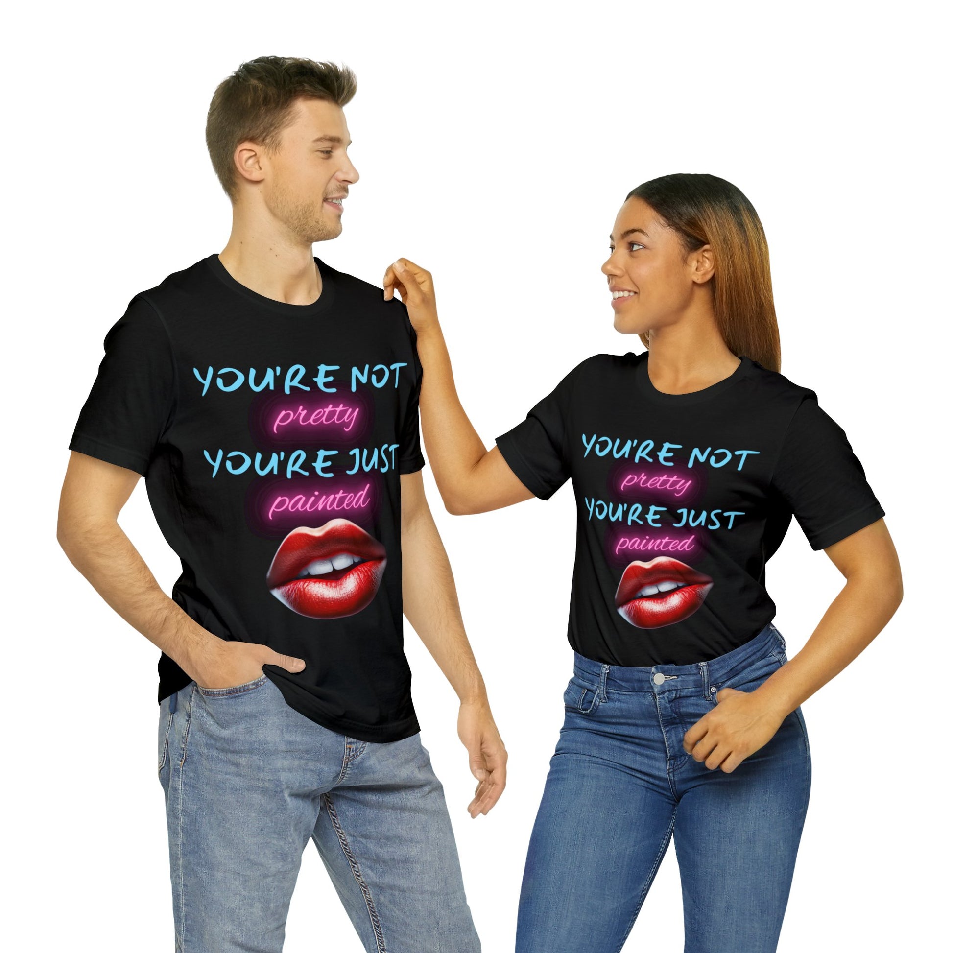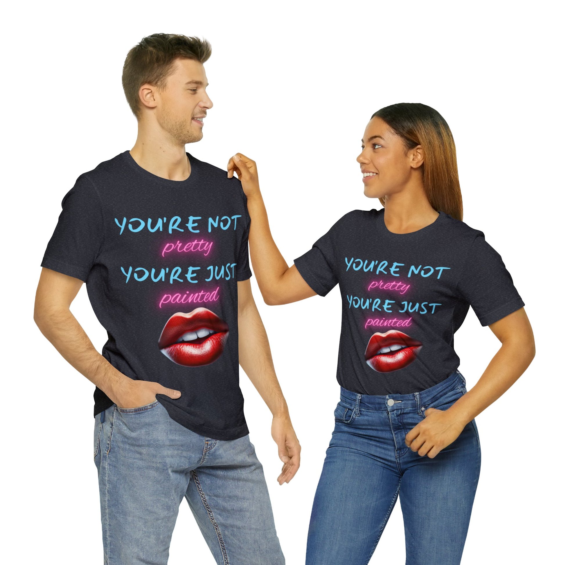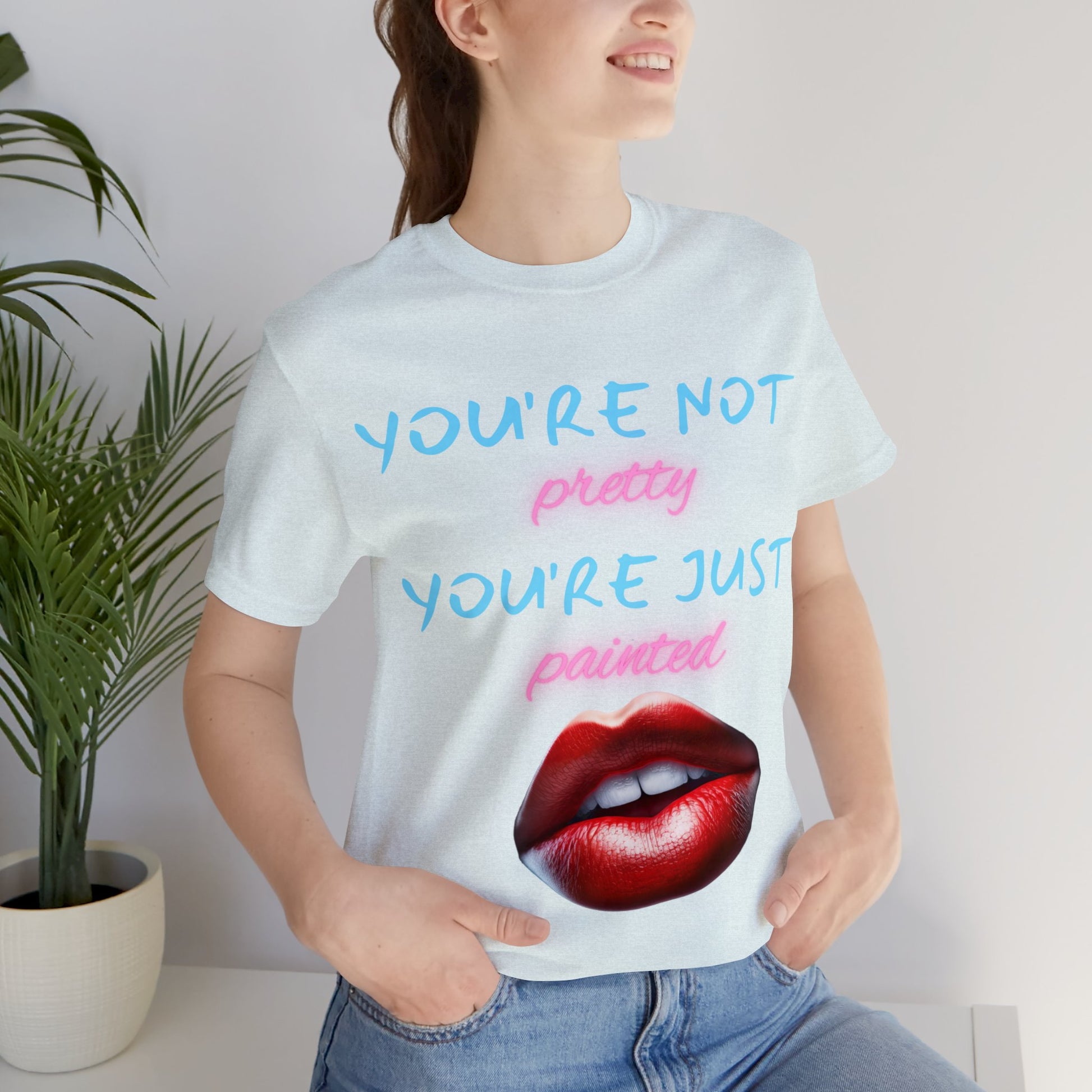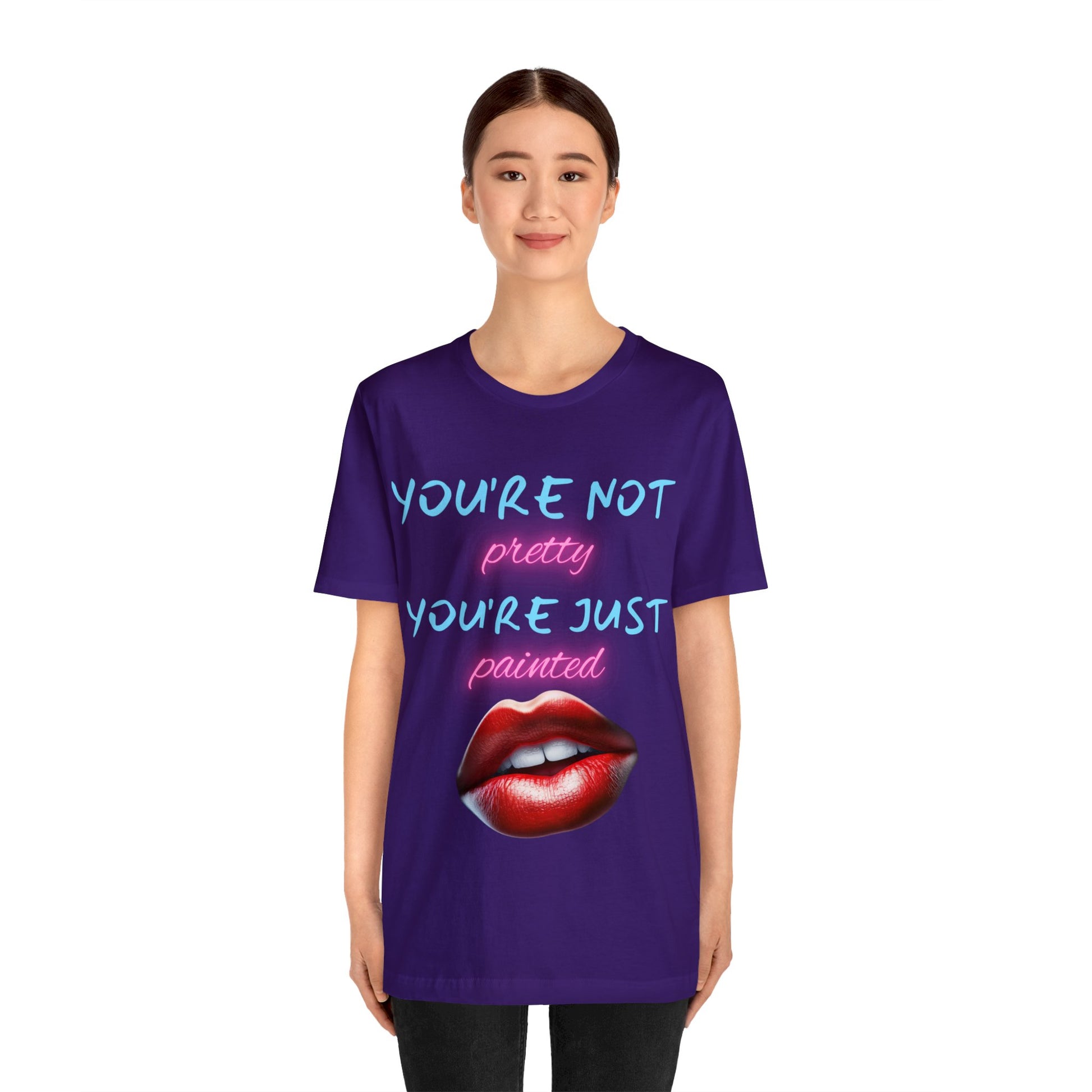 Support Natural Beauty | Funny Gift | You're Not Pretty You're Just Painted | Lips | Unisex | Men's | Women's | Front and Back | Tee | T-Shirt