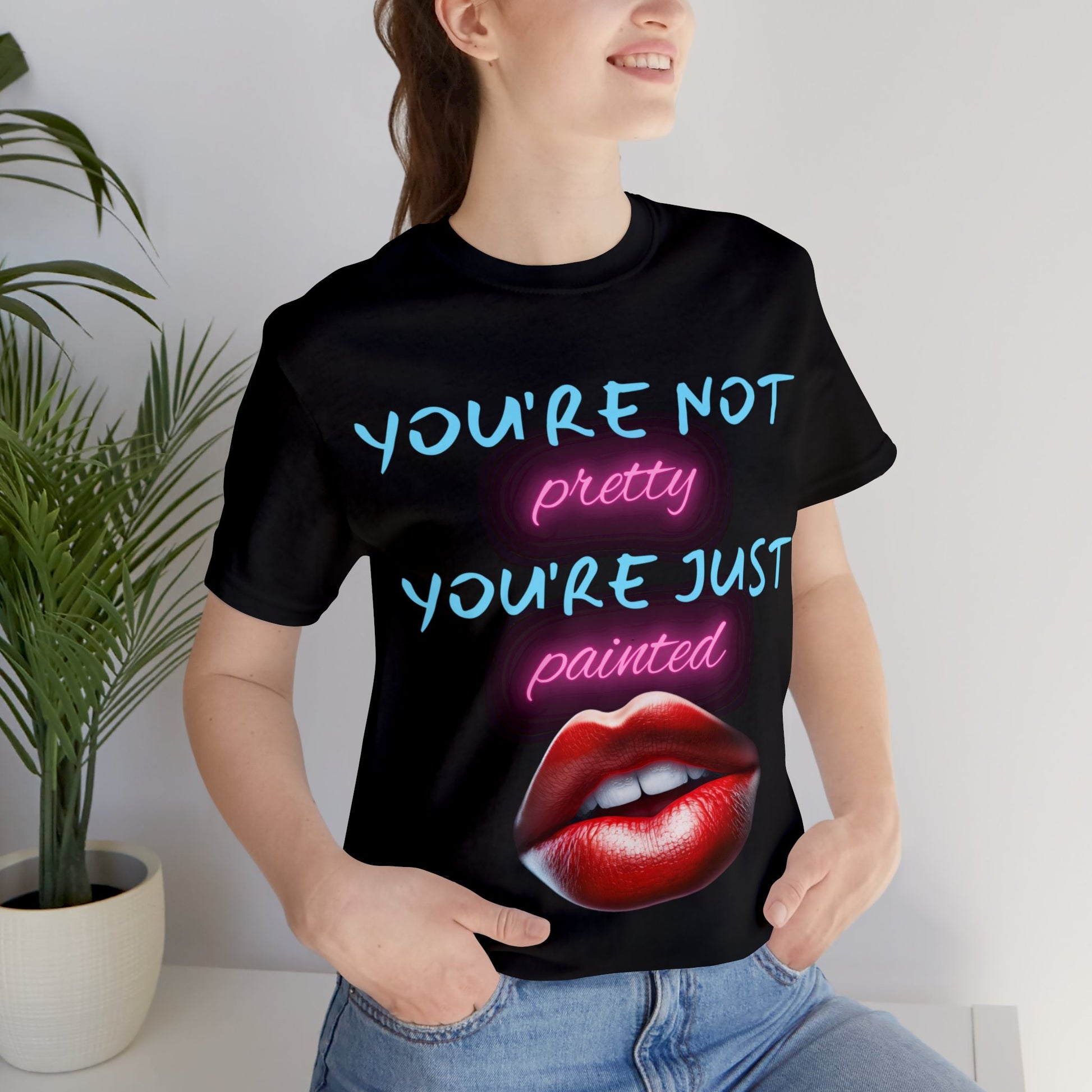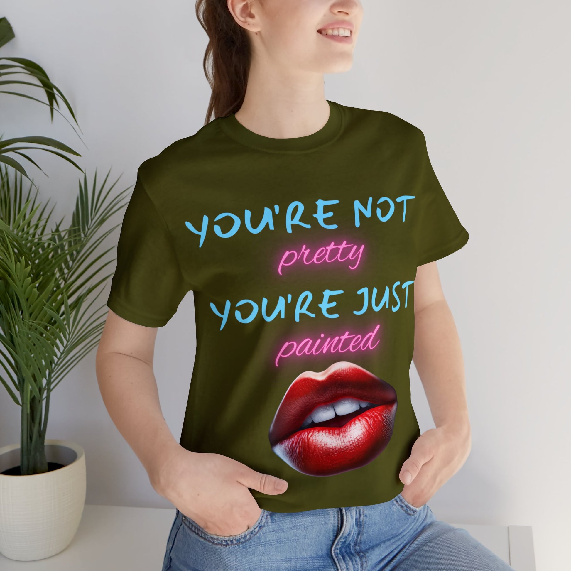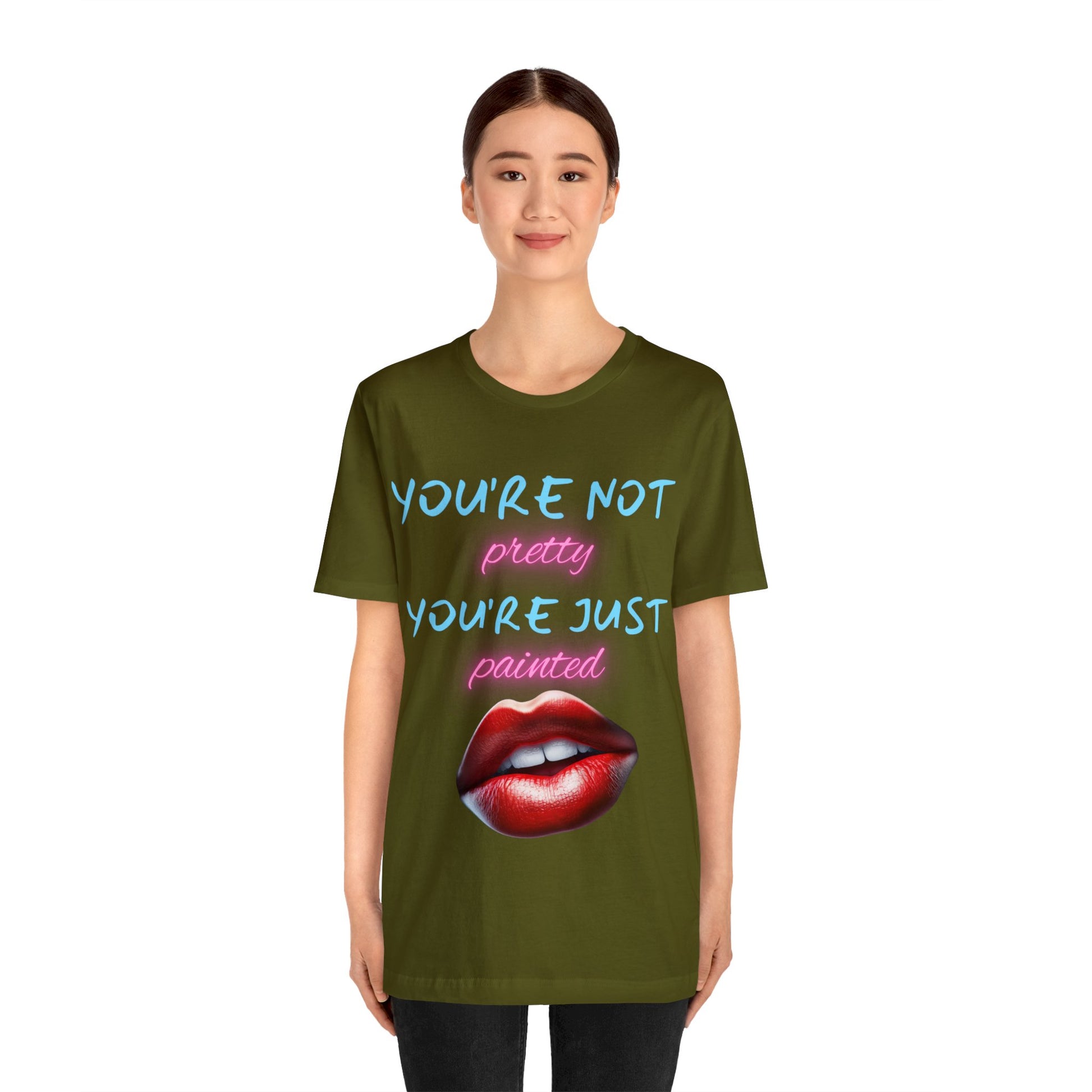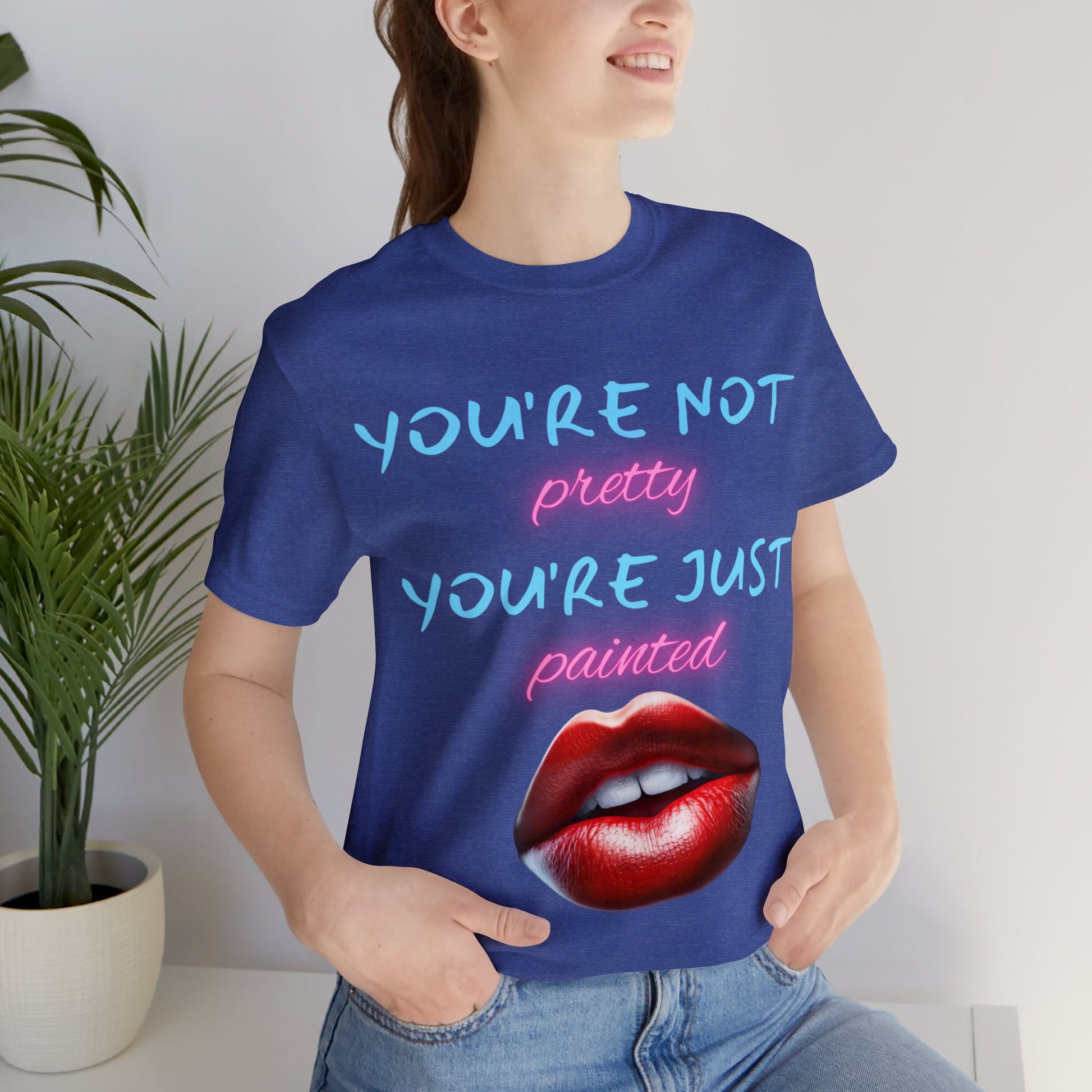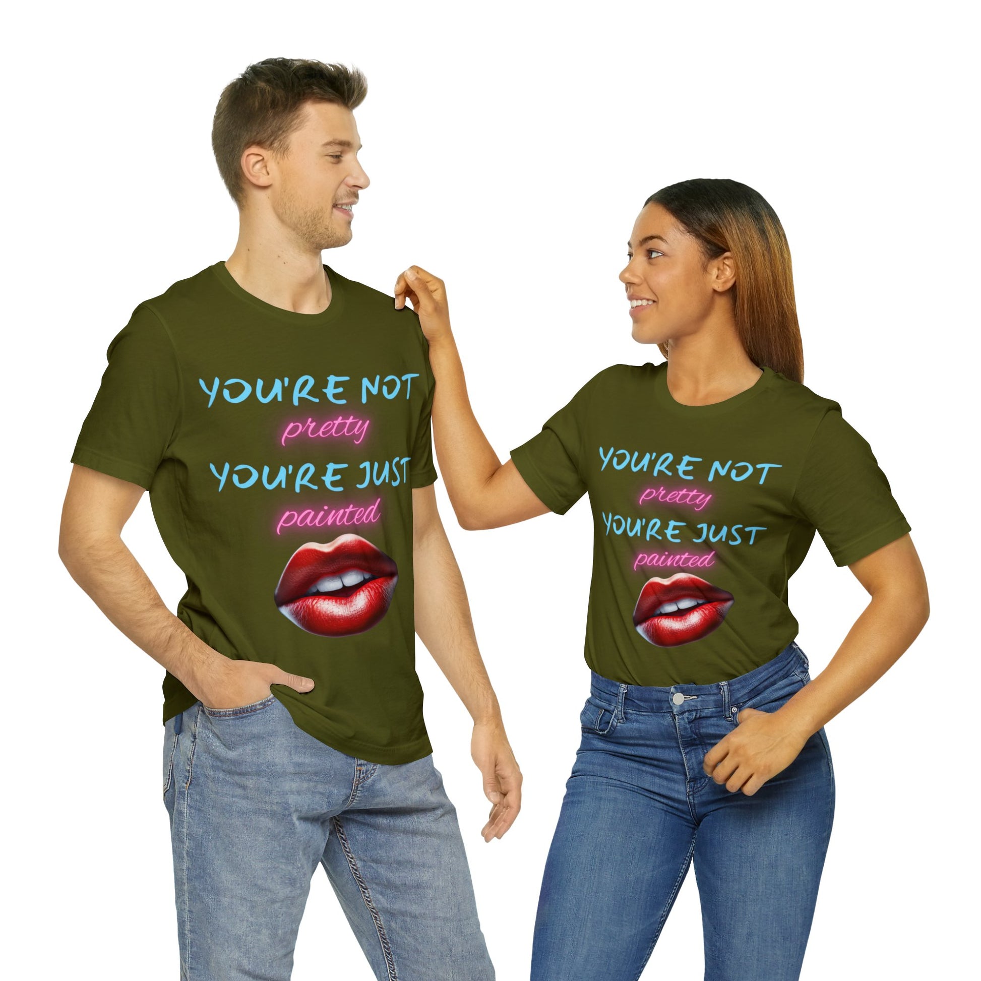 Support Natural Beauty | Funny Gift | You're Not Pretty You're Just Painted | Lips | Unisex | Men's | Women's | Front and Back | Tee | T-Shirt